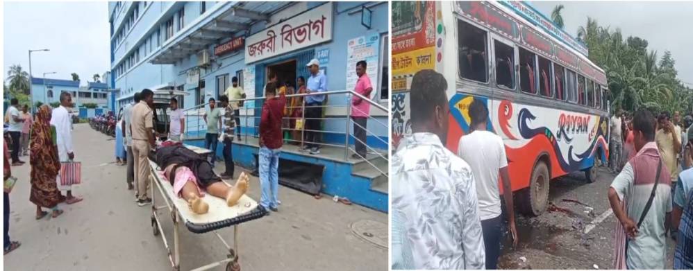 শ্যামসুন্দর ঘোষ,কালনা(পূর্ব বর্ধমান),২১ আগস্ট : দুই মেয়ের চিকিৎসা করাতে হাসপাতালে নিয়ে যাচ্ছিলেন বাবা ৷ বাইকে চড়ে তিনজন যাওয়ার সময় যাত্রীবাহী বাসের সঙ্গে সংঘর্ষে মৃত্যু হল বাবা ও এক মেয়ের । গুরুতর আহত অন্য মেয়ে । দুর্ঘটনাটি ঘটেছে আজ বৃহস্পতিবার সকালে পূর্ব বর্ধমান জেলার কালনা থানার ধাত্রীগ্রাম বড় স্বরাজপুর এর কাছে । পুলিশ জানিয়েছে,মৃতদের নাম ফরজ মল্লিক ও নুরজাহান খাতুন । আহত ফারহানা খাতুন কালনা মহকুমা হাসপাতালে চিকিৎসাধীন । তাদের বাড়ি নাদনঘাট থানা এলাকায় ।