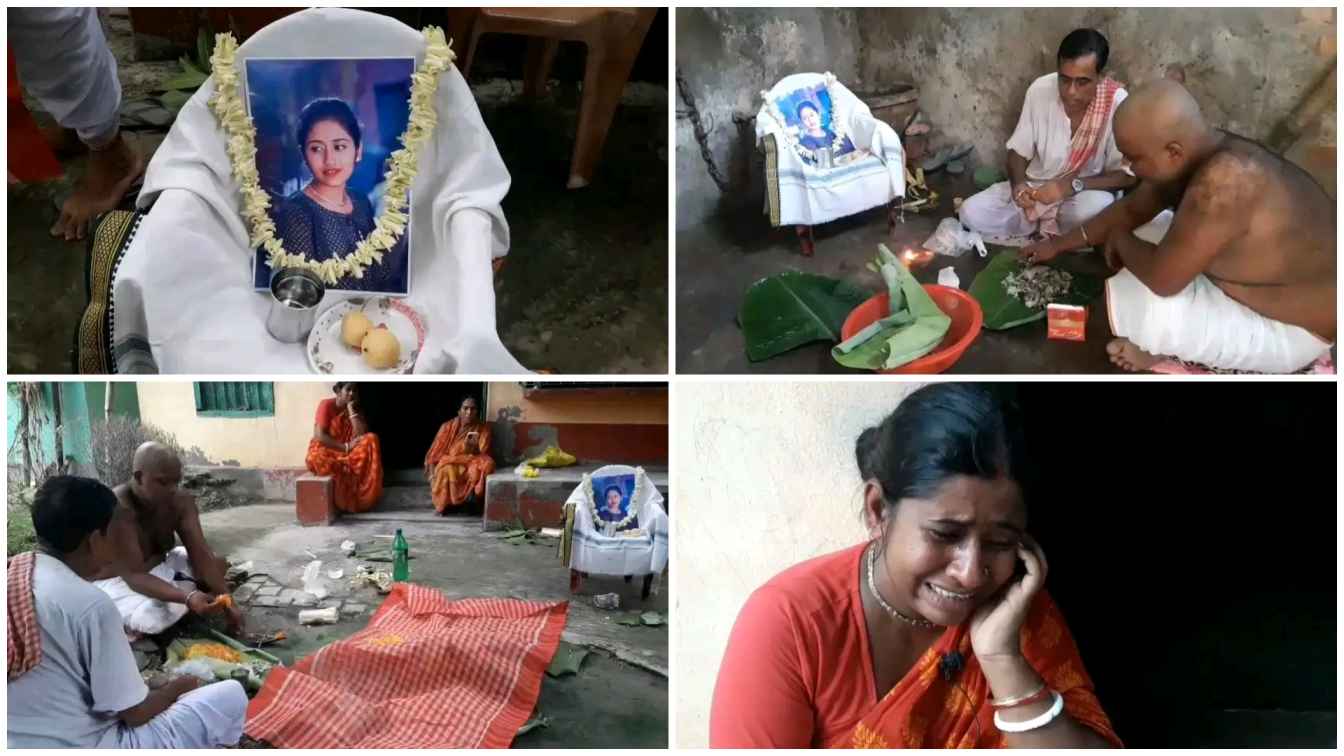 জানা গেছে,শনিবার ওই তরুনীর শ্রাদ্ধানুষ্ঠানের আয়োজন করা হয় । রীতি মেনে সমস্ত ক্রীড়াকর্ম সম্পাদন করেন তরুনীর কাকা সোমনাথ বিশ্বাস । কুশপুতুলে মুখাগ্নি,পিন্ডদান থেকে শুরু করে মস্তক মুন্ডন প্রভৃতি যাবতীয় ধর্মীয় আচার পালন করেন তিনি । পাশাপাশি তরুনীর জামাকাপড়, ছবি,পরিচয়পত্র, স্কুল কলেজের যাবতীয় নথিপত্র পুড়িয়ে সব সম্পর্ক ছিন্ন করেন তারা ।।