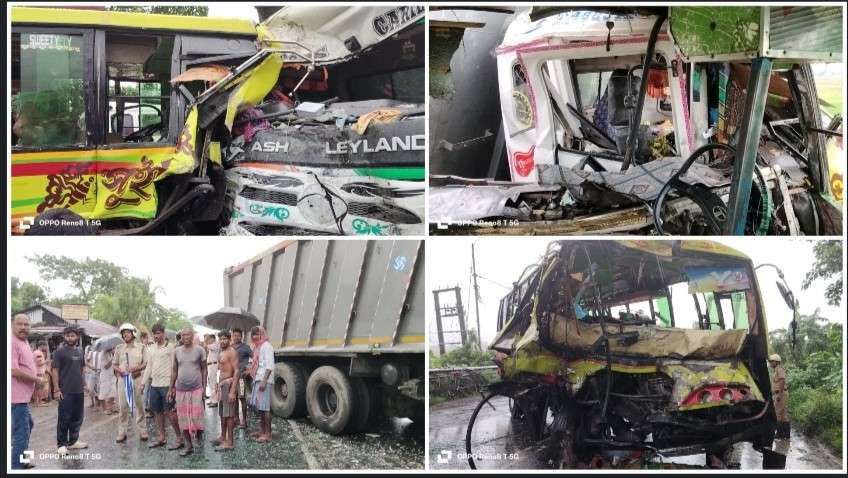প্রদীপ চট্টোপাধ্যায়,বর্ধমান,১৫ সেপ্টেম্বর : যাত্রীবাহী বাস ও ডাম্পারের মুখোমুখি সংঘর্ঘে মারাত্মক জখম হলেন দুমড়ে মুচড়ে যাওয়া বাসের চালক। আহত হয়েছেন বাসে থাকা জনা কুড়ি যাত্রী । গ্যাস কাটার এনে স্টিয়ায়িং কেটে উদ্ধার করা হয় বাসের চালককে। আজ সোমবার সকাল ৯টা নাগাদ ভয়াবহ বাস দুর্ঘটনাটি ঘটেছে পূর্ব বর্ধমানের কালনার নান্দাই-দুর্গাপুর রেল গেট সংলগ্ন এলাকায়।প্রথমে স্থানীয় বাসিন্দারা উদ্ধার কাজে হাত লাগায়।পরে পুলিশ ঘটনাস্থলে পৌছায়। মারাত্মক জখম হওয়া বাসের চালক সহ আহত বাসযাত্রীদের সকলকে উদ্ধার করে পুলিশ কালনা মহকুমা হাসপাতালে চিকিৎসার জন্য পাঠায়।