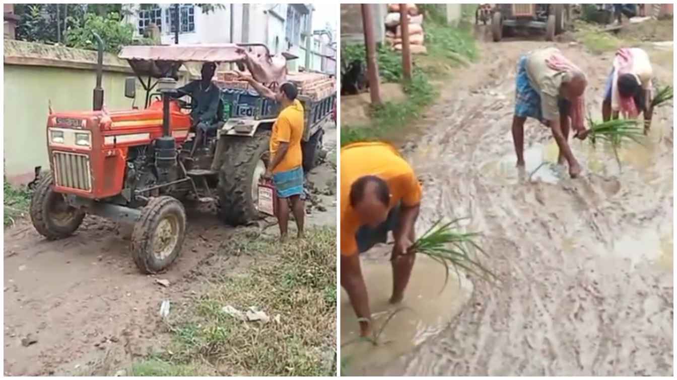 জানা গেছে, সংস্কারের কাজ দীর্ঘদিন না হওয়ায় পশ্চিম খরমপুর গ্রামের মাঝের পাড়ার ১৫০ থেকে ২০০ মিটার রাস্তার মোড়াম উঠে গিয়ে মাটি বের হয়ে গেছে । রাস্তা জুড়ে সৃষ্টি হয়েছে বড় বড় খানাখন্দের । এদিকে নিম্নচাপের জেরে কয়েকদিন ধরে দফায় দফায় বৃষ্টিপাতের কারণে সেই সমস্ত খানাখন্দে জল জমেছে । রাস্তা জুড়ে সৃষ্টি হয়েছে প্রায় এক হাঁটু কাদা। গ্রামের অন্য পাড়াতে রয়েছে প্রাথমিক স্কুল,হেলথ সেন্টার ও পোস্ট অফিস । বেহাল রাস্তার কারনে কচিকাঁচারা স্কুলে যেতে পারছে । রোগীদের চিকিৎসা পড়াতে গিয়ে বিপাকে পড়তে হচ্ছে পরিবারের লোকজনদের । পোস্ট অফিসে কাজে যেতে গিয়েও পাড়ার বাসিন্দাদের চরম সমস্যার মুখোমুখি হতে হচ্ছে । আজ শুক্রবার একটি ইঁট বোঝাই ট্রাক্টর ওই রাস্তা দিয়ে যেতে গিয়ে চাকা কাদায় বসে যায় । ফলে চুড়ান্ত নাকাল হতে হয় স্থানীয় বাসিন্দাদের । এরপর ক্ষিপ্ত গ্রামবাসী কর্দমাক্ত রাস্তার ধান গাছের চারা পুঁতে প্রতিবাদ জানান ।
