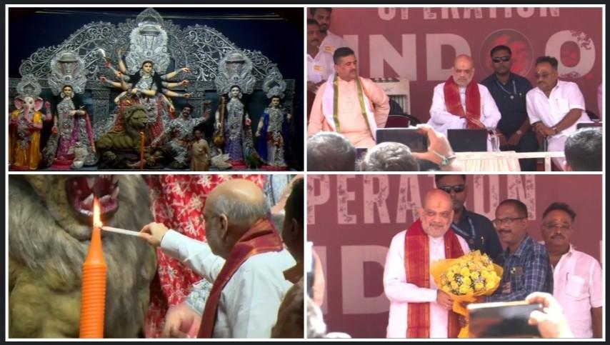 বৃহস্পতিবার রাতে কলকাতার নেতাজি সুভাষ চন্দ্র বসু আন্তর্জাতিক বিমানবন্দরে অবতারণ করেন অমিত শাহ । তাঁকে স্বাগত জানান বিরোধী দলনেতা শুভেন্দু অধিকারী,রাজ্য বিজেপির সভাপতি সমীক ভট্টাচার্যসহ অনান্য । আজ সন্তোষ মিত্র স্কোয়ারে দুর্গাপুজোর উদ্বোধনেও শুভেন্দু ও সমীককে দেখা যায় স্বরাষ্ট্র মন্ত্রীর সাথে । গতকালই অমিত শাহ টুইট করে জানিয়েছিলেন,নবরাত্রির এই শুভক্ষণে আমি কলকাতায় উপস্থিত হয়েছি। পশ্চিমবঙ্গের দুর্গাপূজা হোক কিংবা গুজরাটের গরবা–রাস, সমগ্র দেশ উৎসাহ ও ভক্তিভরে মা দুর্গার আরাধনা করছে। সকালে আমি কালীঘাট মন্দিরে দেবী কালীর দর্শন-পূজা করব। পাশাপাশি দুর্গাপূজার প্যান্ডেলগুলির উদ্বোধনেও অংশ নেব ।’।