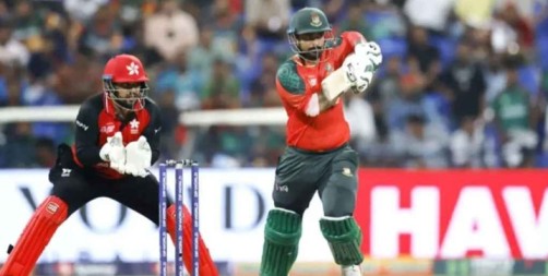 টস জিতে প্রথমে বোলিং করার সিদ্ধান্ত নেয় বাংলাদেশ। শুরু থেকেই তানজিম হাসান সাকিব, তাসকিন আহমেদ ও রিশাদ হোসেনের নিয়ন্ত্রিত বোলিংয়ে চাপে পড়ে হংকং। নির্ধারিত ২০ ওভারে তারা ৭ উইকেট হারিয়ে মাত্র ১৪৩ রান তুলতে সক্ষম হয়।পরে ১৪৪ রানের লক্ষ্য তাড়া করতে নেমে ভালো শুরুর পর তৃতীয় ওভারে প্রথম উইকেট হারায় বাংলাদেশ। আয়ুশ শুক্লার শেষ বলটা আকাশে ভাসিয়ে ডিপ মিড উইকেট অঞ্চলে ক্যাচ হন বাংলাদেশের ওপেনার পারভেজ হোসেন ইমন। দলীয় ২৪ রান, আর ব্যক্তিগত ১৪ বলে ১৯ রান করে সাজঘরে ফেরত যান তিনি। এরপর ইমনের মতো একই ফাঁদে পা দেন তানজিদ হাসান তামিমও। ১৮ বলে ১৪ রান করে আতিফ ইকবালের বলে নিজাকত খানের হাতে ধরা পড়েন তিনি।