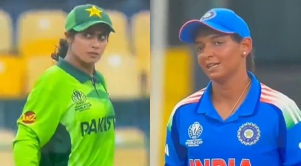 এইদিন স্পোর্টস নিউজ,০৬ অক্টোবর : রবিবার কলোম্বোয় ভারত-পাকিস্তানের মহিলা ওয়ানডে বিশ্বকাপ ম্যাচ চলাকালীন ভারতীয় অধিনায়ক হরমনপ্রীত কৌরকে এক পাকিস্তানি স্পিনারের ‘চোখ দেখানো’র জন্য পালটা তিরস্কৃত হওয়ার একটি ভিডিও ভাইরাল হচ্ছে। গতকাল শ্রীলঙ্কার কলম্বোর আর প্রেমাদাসা স্টেডিয়ামে অনুষ্ঠিত ম্যাচে ভারতীয় মহিলা দল পাকিস্তানকে ৮৮ রানে পরাজিত করেছে, যা আইসিসি টুর্নামেন্টে পাকিস্তানের আরেকটি লজ্জাজনক পরাজয়। প্রথমে ব্যাট করে ভারত নির্ধারিত ৫০ ওভারে ২৪৭ রানে অলআউট হয়। জবাবে ব্যাট করতে নেমে পাকিস্তান ৪৩ ওভারে ১৫৯ রানে অলআউট হয়। এর ফলে ভারত ৮৮ রানে জয়লাভ করে।
