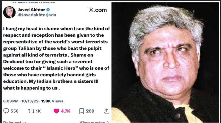 কিন্তু তালিবানের বিদেশমন্ত্রীর রাজকীয় সংবর্ধনা কিছুতেই মেনে নিতে পারছেন না বলিউড গীতিকার জাভেদ আখতার(Javed Akhtar) । এই সংবর্ধনায় তার “লজ্জায় মাথা নিচু” হয়ে গেছে বলে মন্তব্য করেছেন তিনি । সেই সাথে আফগান নারীদের প্রতি তালিবানের অবিচারের কথা স্মরণ করিয়ে দিয়ে তিনি দেওবন্দ কর্তৃপক্ষকে ধিক্কার জানিয়েছেন । জাভেদ আখতার এক্স-এ লিখেছেন,’লজ্জায় মাথা নিচু হয়ে যায় যখন দেখি বিশ্বের সবচেয়ে খারাপ সন্ত্রাসী গোষ্ঠী তালেবানের প্রতিনিধিকে যারা সকল ধরণের সন্ত্রাসীদের বিরুদ্ধে মিম্বরে পিটুনি দিয়েছিল, তারা যে ধরণের সম্মান ও সংবর্ধনা দিয়েছে। দেওবন্দেরও লজ্জা, তাদের “ইসলামিক হিরো” কে এত শ্রদ্ধার সাথে স্বাগত জানানোর জন্য, যারা মেয়েদের শিক্ষা সম্পূর্ণরূপে নিষিদ্ধ করেছে তাদের মধ্যে একজন। আমার ভারতীয় ভাই ও বোনেরা!!! আমাদের সাথে কি হচ্ছে?’