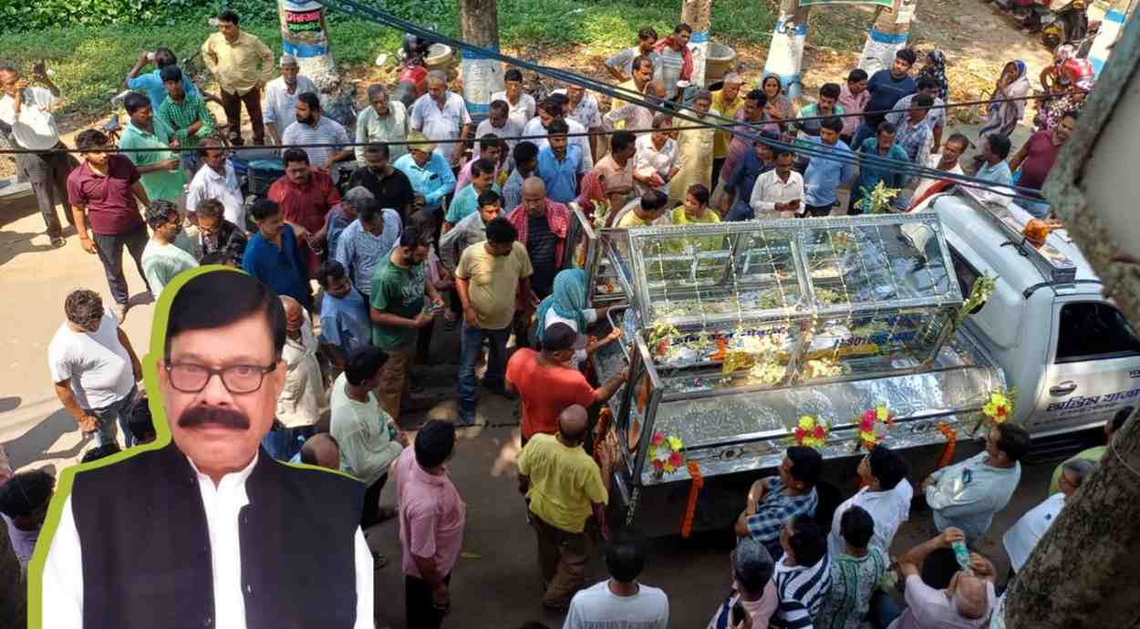 আজ তার মৃতদেহ নিয়ে গুসকরায় শোকমিছিল বের হয় । অংশগ্রহণ করে তৃণমূল, বিজেপি,কংগ্রেস ও সিপিএমের লোকজন ছাড়াও অগনিত মানুষ । গুসকরা বালিকা বিদ্যালয়, পিপি ইন্সটিটিউশন, পুরসভা কার্যালয় এবং কুনুরিকা সমবায় সমিতির অফিসে তার দেহ নিয়ে গিয়ে শেষ শ্রদ্ধা জানানো হয় । শহর পরিক্রমা করে শোকযাত্রা পৌঁছয় রটন্তীকালীতলার শ্মশানে, সেখানেই সম্পন্ন হয় শেষকৃত্য।।