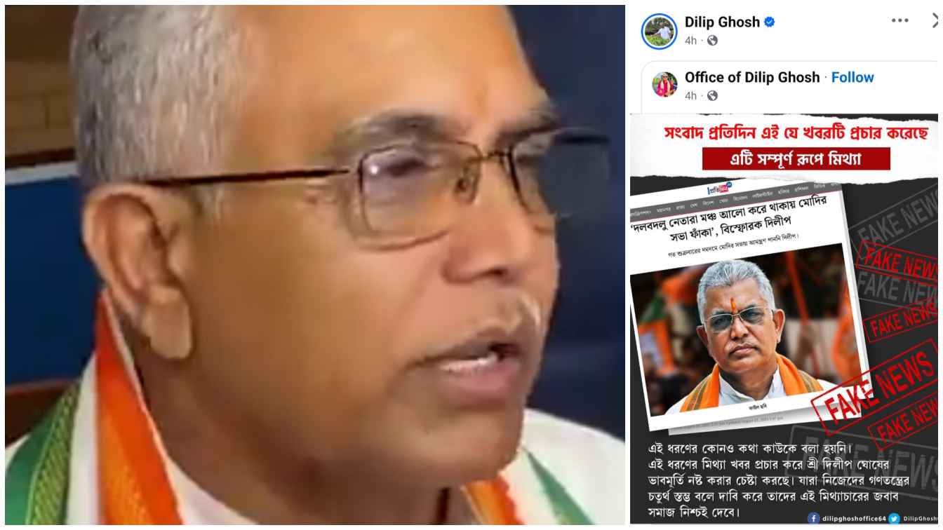 ২০২৬-এ দলের সাফল্যের সম্ভাবনা কতটা ? এই প্রশ্নের উত্তরে দিলীপ ঘোষকে কোট করে লেখা হয়েছে, “খুব খারাপ, খুব খারাপ। লড়াইটা হতে চলেছে ২০২১-এর আসন ধরে রাখার লড়াই। সেটাও এখন দূর অস্ত মনে হচ্ছে।” প্রতিক্রিয়ায় আজ “অফিস অফ দ্য দিলীপ ঘোষ” ফেসবুক পেজে ওই প্রতিবেদনের স্ক্রিনশট শেয়ার করা হয়েছে । যেখানে পোস্টারের আকারে লেখা হয়েছে, “সংবাদ প্রতিদিন এই যে খবরটি প্রচার করেছে এটি সম্পূর্ণ রূপে মিথ্যা৷ এই ধরণের কোনও কথা কাউকে বলা হয়নি। এই ধরণের মিথ্যা খবর প্রচার করে শ্রী দিলীপ ঘোষের ভাবমূর্তি নষ্ট করার চেষ্টা করছে। যারা নিজেদের গণতন্ত্রের চতুর্থ স্তম্ভ বলে দাবি করে তাদের এই মিথ্যাচারের জবাব সমাজ নিশ্চই দেবে।”