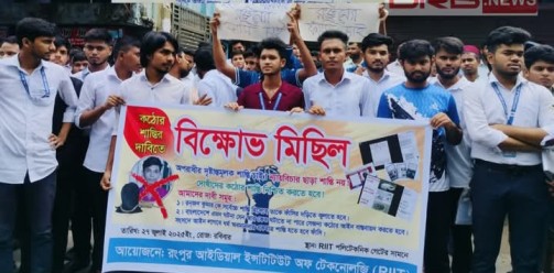 ইসলামের নবীকে নিয়ে কটুক্তির মিথ্যা অভিযোগে গ্রেপ্তার হিন্দু কিশোরের ফাঁসির দাবিতে বিক্ষোভ করল রংপুরের জামাত ইসলামির ইঞ্জিয়ারিং ছাত্ররা