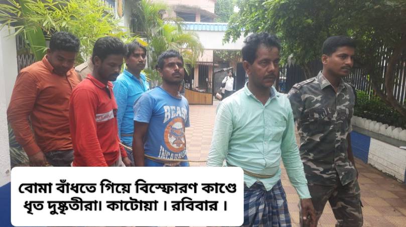 গত শুক্রবার রাতে কাটোয়া থানার রাজুয়া গ্রামের উত্তরপাড়ায় মৃত মিন্টু শেখের বাড়িতে বোমা বাঁধার কাজ চলছিল । সেই সময় বিকট শব্দে বিস্ফোরণ ঘটে । বিস্ফোরণের অভিযাতে ঘরটি কার্যত ধূলিস্যাৎ হয়ে যায় । পুলিশ গিয়ে বরকত কারিগরের মৃতদেহ ও তুফান চৌধুরীকে রক্তাক্তবস্থায় উদ্ধার করে । প্রথমে তাকে কাটোয়া মহকুমা হাসপাতালে ভর্তি করা হয়েছিল । কিন্তু অবস্থা গুরুতর হওয়ায় শনিবার তুফানকে বর্ধমান মেডিকেল কলেজ হাসপাতালে স্থানান্তরিত করা হয়েছে। জানা গিয়েছে সারা শরীর ঝলসে যাওয়ার পাশাপাশি তুফানের দুই চোখই ক্ষতিগ্রস্থ হয়েছে। সে কানেও নাকি শুনতে পাচ্ছে না । তবে তারই মধ্যে তুফানকে জিজ্ঞাসাবাদ করে পুলিশ কেতুগ্রামের কাচরা গ্রামের বাসিন্দা জামির শেখ নামে ওই দুষ্কৃতীর হদিশ পায় । জামিরকে পাকড়াও করার পরেই পুলিশ শনিবার রাতে বাকি চারজনকে ধরে ।।