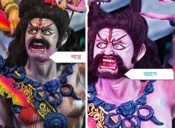 জানা গেছে,সোমবার (২৯ সেপ্টেম্বর) মহাসপ্তমীর রাতে আরতী শেষে যখন ভক্তরা মন্দির ত্যাগ করতে যাচ্ছিলেন, তখন দেখা যায় অসুরের রূপ বিকৃতভাবে উপস্থাপন করা হয়েছে। স্থানীয় সনাতনী সম্প্রদায় মনে করছে, এমন বিকৃতি শুধু ধর্মীয় অনুভূতিতে আঘাতই হানে না, বরং শারদীয় দুর্গোৎসবের মহিমাকেও ক্ষুণ্ণ করে।