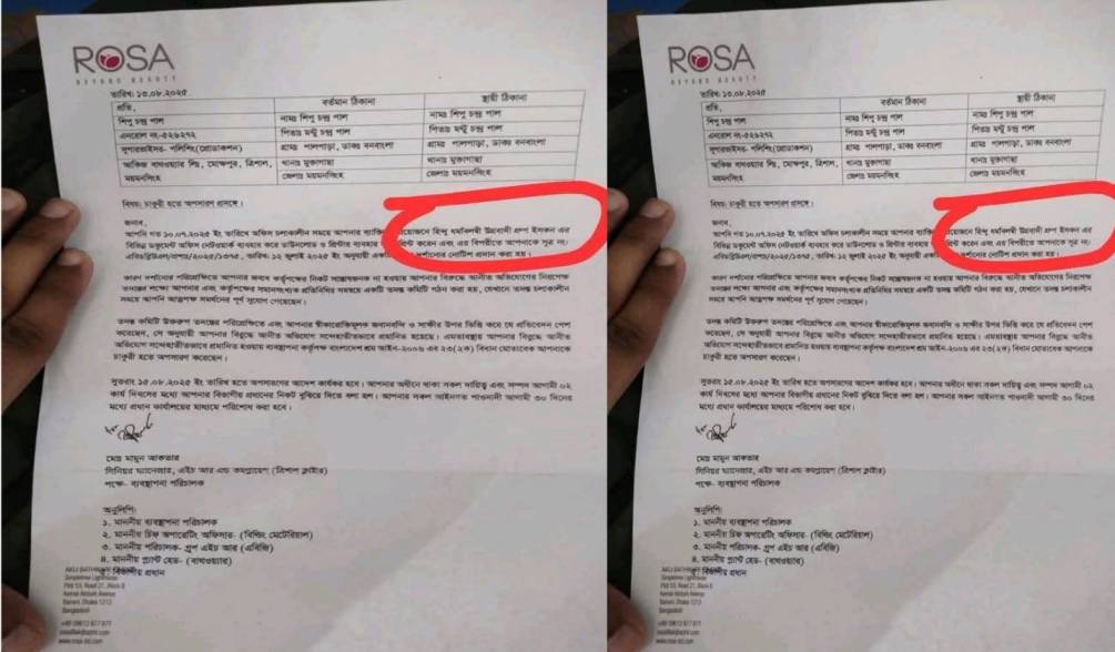 মোঃ মামুন আকতার, সিনিয়র ম্যানেজার, এইচআর এন্ড কমপ্লায়েন্স (ত্রিশাল ক্লাস্টার) স্বাক্ষরিত অপসারণ চিঠিতে উল্লেখ করা হয়েছে যে, শিপু চন্দ্র পালের বিরুদ্ধে আনা অভিযোগের ভিত্তিতে কারণ দর্শানোর নোটিশ দেওয়া হয়। তার জবাব সন্তোষজনক না হওয়ায় একটি নিরপেক্ষ তদন্ত কমিটি গঠন করা হয়, যেখানে আত্মপক্ষ সমর্থনের পূর্ণ সুযোগ দেওয়া হয়েছিল। তদন্ত কমিটির প্রতিবেদন, শিপু চন্দ্র পালের স্বীকারোক্তিমূলক জবানবন্দি ও সাক্ষীর উপর ভিত্তি করে অভিযোগ সন্দেহাতীতভাবে প্রমাণিত হয়েছে। ফলস্বরূপ, বাংলাদেশ শ্রম আইন-২০০৬ এর ২৩ (২ক) ধারা মোতাবেক ১৫ আগস্ট ২০২৫ তারিখ থেকে তাকে চাকরি হতে অপসারণের আদেশ কার্যকর হবে।
