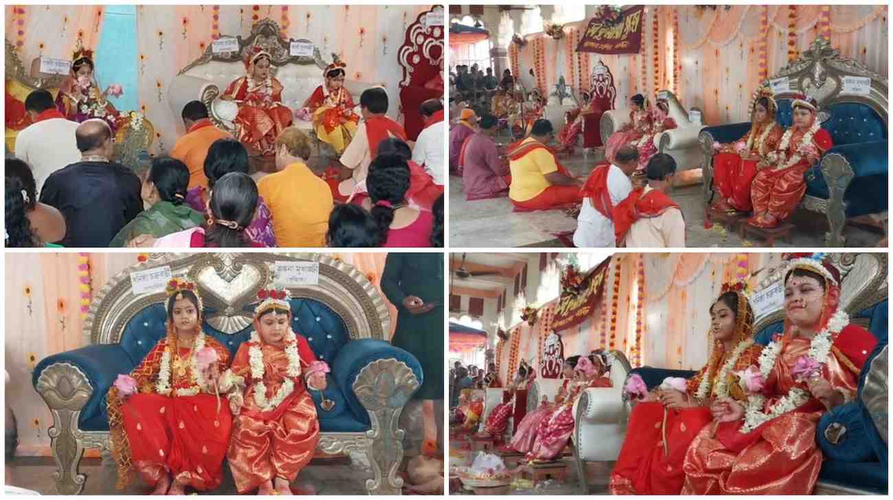 ।নয়জন কুমারীকে দেবী দুর্গার নয়টি রুপে এখানে পুজো করা হয়ে থাকে।এই রুপ গুলির মধ্যে অন্যতম হল কালিকা মালিনী,সুভগা,কব্জিকা,কালসন্দর্ভা ও উমা। কুমারী পুজো দেখার জন্য ভক্তদের ভিড উপচে পড়লো সর্বমঙ্গলা মন্দিরে।