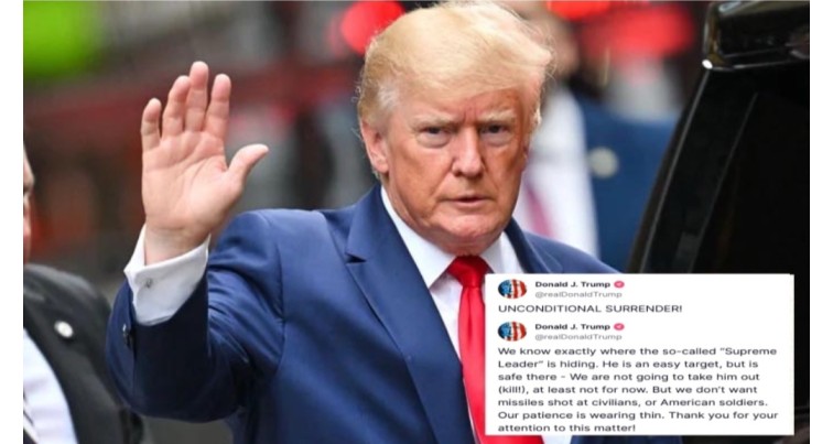 ইরান-ইসরায়েল যুদ্ধ : ইরানকে নিঃশর্ত আত্মসমর্পণের হুমকি দিলেন মার্কিন প্রেসিডেন্ট ট্রাম্প