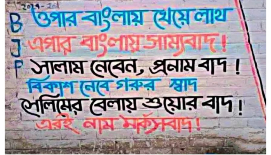 বাংলাদেশে পাকিস্তানি সেনা শাসন চলাকালীন অবর্ণনীয় নির্যাতনের শিকার হয়েছে সে দেশের হিন্দুরা । তখন কয়েক কোটি হিন্দু ভিটেমাটি ছেড়ে ভারতে পালিয়ে এসেছে । শেখ হাসিনাকে ক্ষমতা থেকে উৎখাতের পর পাকিস্তানি সেনার বর্বরতার পুনরাবৃত্তি হচ্ছে বর্তমান বাংলাদেশে । যে কারণে এখনো বহু হিন্দু হয় দেশ ছেড়ে ভারতে পালিয়ে আসছে,নচেত ভারতে পালিয়ে আসার জন্য তারা উপযুক্ত সময়ের অপেক্ষা করছেন । বাংলাদেশের হিন্দু নির্যাতনের এই প্রেক্ষাপটকে ২০২৬ সালের বিধানসভার নির্বাচনে প্রচারের হাতিয়ার করেছে বিজেপি । বাংলাদেশ থেকে পালিয়ে এসে এদেশে এসে ধর্মনিরপেক্ষ বনে যাওয়া কিছু নেতাদের কটাক্ষ করে লেখা বিজেপির একটা দেয়াল লিখন ব্যাপক জনপ্রিয় হয়েছে সামাজিক যোগাযোগ মাধ্যমে । আর সেটি হল : “ওপার বাংলায় খেয়ে লাথ / এপার বাংলায় সাম্যবাদ ! /সালাম নেবেন, প্রণাম বাদ / বিকাশ নেবে গরুর স্বাদ / সেলিমের বেলায় শুয়োর বাদ ! / এরই নাম মার্কসবাদ !”