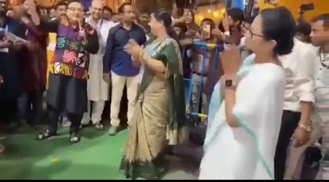এইদিন ওয়েবডেস্ক,কলকাতা,২৮ সেপ্টেম্বর : কলকাতার একটি পুজোর উদ্বোধনে তৃণমূল সুপ্রিমো মমতা ব্যানার্জি এবং কামারহাটির তৃণমূল বিধায়ক মদন মিত্রের একটা ভিডিও ভাইরাল হয়েছে সামাজিক যোগাযোগ মাধ্যমে । ভিডিওটি শেয়ার করেছেন বিজেপির তরুনজ্যোতি তিওয়ারি । ভিডিওতে মহিলা ও পুরুষ পরিবেষ্টিত হয়ে রঙচঙে পোশাক পরা মদন মিত্র ও সাদা শাড়ি পরে মমতা ব্যানার্জিকে দেখা গেছে । মদনকে মাইক্রোফোন হাতে একটি জনপ্রিয় গান গাইতে দেখা গেছে । সেই গানের লিরিক হল : “দে দে পাল তুলে দে, ও মাঝি হেলা করিস না/ছেড়ে দে নৌকা মাঝি আমি যাব মদিনা । আমার হৃদয়ে কাবা,নয়নে মদিনা…..” । মদনের গানে বিভোর মমতাকে ঘাড় দু’পাশে হেলিয়ে হাততালি দিয়ে সঙ্গত দিতে দেখা যায় ।