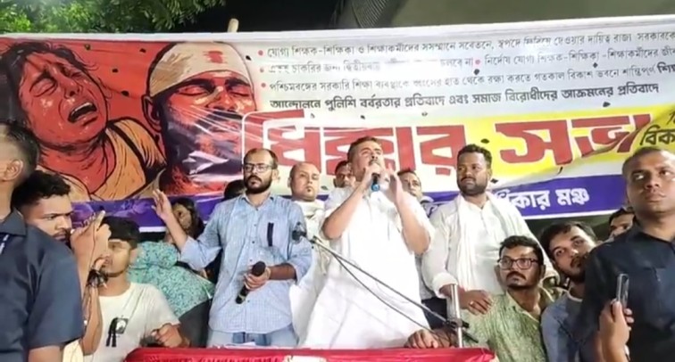 এইদিন ওয়েবডেস্ক,কলকাতা,১৬ মে : বৃহস্পতিবার সকালে তৃণমূল নেতা সব্যসাচী দত্তর গুন্ডাবাহিনীর হামলা । সন্ধ্যায় পুলিশ-বাহিনীর লাঠিচার্জ । কারও ভেঙেছে পা, কারওর আবার মাথা ফেটেছে । আহত হয়েছেন দুই ডজনেরও অধিক চাকরিহারা শিক্ষক ও অশিক্ষক কর্মী । তারপরেও আজ শুক্রবার সকাল থেকে আন্দোলনে বসে চাকরিহারারা । পুলিশের ‘নির্যাতন’-এর প্রতিবাদে ধিক্কার সভার আয়োজন করা হয় কলকাতার সল্টলেকের বিকাশ ভবনের সামনে । গতকাল সাংবাদিকদের চাকরিহারা বিক্ষোভকারী সুমন বিশ্বাস জানান যে বিরোধী দলনেতা শুভেন্দু অধিকারীকে আসার জন্য সাদরে আমন্ত্রণ জানাচ্ছেন । তাদের সেই ডাকে সাড়া দিয়ে আজ সন্ধ্যায় আন্দোলনস্থলে উপস্থিতও হন বিরোধী দলনেতা । তিনি রাজনৈতিক ভেদাভেদ ভুলে চাকরিহারাদের পাশে থাকার বার্তা দিলেও তাদের সতর্ক করে দিয়ে বলেন, ‘মিটিং আর আন্দোলন এক সাথে হতে পারে না ।’
