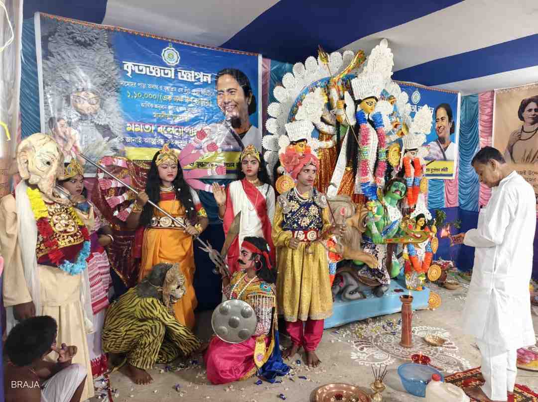 অনাথ ও বৃদ্ধাশ্রমটি বেশ কয়েক বছর আগে গড়ে ওঠে মন্ত্রী স্বপন দেবনাথের খাসতালুক পূর্ব বর্ধমানের পূর্বস্থলী ১ ব্লকের দামোদর পাড়ায়। এই অনাথ ও বৃদ্ধাশ্রমে থাকে অনাথ শিশু, অসহায় বৃদ্ধ-বৃদ্ধারা। তাঁদের সহ স্থানীয় দুঃস্থ মানুষজনকে পুজোর আনন্দে স্থানীয় বিধায়ক তথা রাজ্যের মন্ত্রী স্বপন দেবনাথ ২০০১ সালে এখানে দুর্গা পুজোর সূচনা করেন। এবছর সেখানেই হচ্ছে ২৫ তম বর্ষের পুজো।অনাথ আশ্রমে আবাসিক রিয়া ওরাও এদিন সাজেন দুর্গা,সুরলিনা মাণ্ডি সাজেন সরস্বতী,প্রমিলা হাঁসদা সাজেন সরস্বতী। এছাড়াও সুমি মাণ্ডি ,রাজেশ মুর্মু সহ অন্য আবাসিকদের কেউ কেউ কার্তিক ,গনেশ এবং বাকিদের কেউ সাজে মহিষাসুর আবার কেউ সাজে সিংহ। এঁদেরকেই এদিন জীবন্ত দেব-দেবী জ্ঞানে পুজো করেন মন্ত্রী স্বপন দেবনাথ। তাঁদের কাছে তিনি আশীর্বাদ প্রার্থনাও করেন। পুজো শেষ হতেই সাজ পোশাক খুলে ওই অনাথরা আশ্রমে নিমন্ত্রিত মানুষজনের পাতে ডাল ভাত,তরকারি তুলে দেন।ষষ্ঠীর দিন থেকে টানা ৫ দিন অনাথরাই অন্নভোগ বিতরণের দায়িত্ব পালন করবেন বলে আশ্রমিকদের কথায় জানা গিয়েছে।