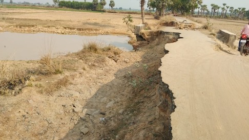 শেখ মিলন,ভাতার(পূর্ব বর্ধমান),১৪ ফেব্রুয়ারী : জলের তোড়ে উড়ে গেছে অর্ধেক রাস্তা৷ বাকি অর্ধেক রাস্তার তলার মাটি সরে গেছে । অল্প ভারি যানবাহন গেলেই ভেঙে পড়ার আশঙ্কা । তবুও ওই রাস্তা দিয়ে ঝুঁকি নিয়ে যাতায়াত করতে হচ্ছে গ্রামবাসীদের । পূর্ব বর্ধমান জেলার ভাতার থানার মাহাতা পঞ্চায়েতের মাহাতা সংলগ্ন এলাকা থেকে কাশিপুর যাওয়ার রাস্তা আজ কার্যত মরণফাঁদে পরিনত হয়েছে । অবিলম্বে রাস্তাটি সংস্কারের দাবি তুলছেন এলাকাবাসীরা ।