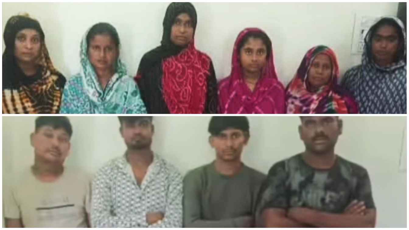 পুলিশ জানিয়েছে, ধৃতরা হল : ফারজানা মোল্লা, নাজিম মোল্লা, আদরি মোল্লা, রিক্তা মোল্লা,সাথি মোল্লা, রাবিয়া মোল্লা, সামিম মোল্লা,মুরাদ মোল্লা,ইকবাল মোল্লা এবং আজিম মোল্লা । একই পরিবারের সদস্য ওই দলটির বাড়ি বাংলাদেশের নাড়াইল জেলায় । বছর খানেক আগে তারা অবৈধভাবে নদীয়ার সীমান্ত দিয়ে পশ্চিমবঙ্গে প্রবেশ করে । তারপর তারা কাজের সন্ধানে গুজরাটে চলে যায় । কিন্তু গুজরাটে বাংলাদেশী অনুপ্রবেশকারীদের বিরুদ্ধে ব্যাপক ধরপাকর অভিযান চলায় তারা গ্রেপ্তারের ভয়ে বাংলাদেশে ফিরে যাওয়ার পরিকল্পনা করেছিল । সেই উদ্দেশ্যে তারা সীমান্ত পারাপার করার জন্য আজ দুপুরে নদীয়ার ধানতলা থানার কুলগাছি এলাকায় আসে । সেই সময় খবর পেয়ে পুলিশ তাদের ধরে ফেলে । পরে ধৃতদের রানাঘাট দেওয়ানী ও ফৌজদারি আদালতে পাঠানো হয় ।।