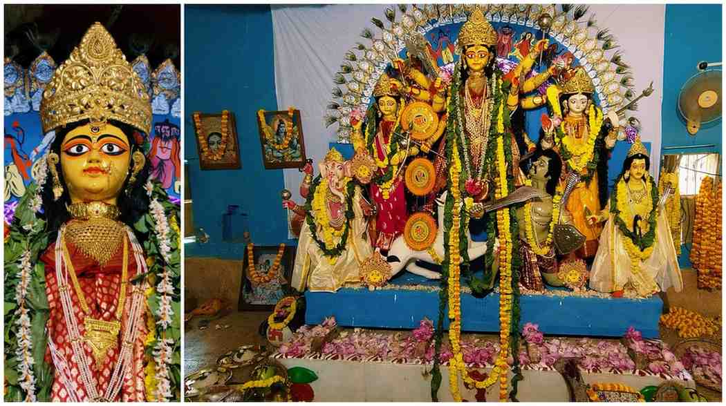 জানা গেছে,কেতুগ্রামের রাজুর গ্রামের বড়াল বাড়ির দুর্গাপূজো প্রায় ৪৮৩ বছরের প্রাচীন । দৌহিত্র বংশ বটব্যাল ও মুখার্জি পরিবার মিলে বাৎসরিক পুজো পরিচালনা করেন । পরিবারের সদস্যরা প্রায় সকলেই বাইরে থাকেন । তবে শারদোৎসবের সময় সকলেই গ্রামে এসে জড়ো হন । পরিবার সূত্রে জানা গেছ, দেবীর প্রায় ৬ ভরি সোনার গহনা ছিল । এছাড়া পায়ে পরানোর জন্য রুপোর দামি মল ছিল । পুজোর ক’টা দিন সেই সমস্ত গহনা দেবীকে পরানো হত । নিরঞ্জনের আগে পিতলের বাক্সে ভরে গহনাগুলি কলকাতায় বসবাসকারী এক শরিকের কাছে রেখে দেওয়া হয়৷ এবারেও যথারীতি দেবীকে সমস্ত গহনার সাজে সাজানো হয়েছিল ।