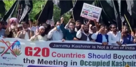 সোমবার পাকিস্তান অধিকৃত কাশ্মীরের রাজধানী মুজাফফরাবাদে পাকিস্তানের বিদেশমন্ত্রী বিলাওয়াল ভুট্টো-জারদারির নেতৃত্বে একটা বিক্ষোভ সভা হয়ে গেল । যদিও সেই বিক্ষোভ সভায় স্থানীয় বাসিন্দাদের উপস্থিতি ছিল না । পাকিস্তান অধিকৃত কাশ্মীরের বাইরের অনান্য প্রদেশ থেকে লোক নিয়ে গিয়ে সভাটি করা হয়েছে বলে খবর । বিক্ষোভকারীরা জি-২০ ভুক্ত দেশগুলিকে ট্যুরিজম ওয়ার্কিং গ্রুপের বৈঠক বয়কটের আহ্বান জানায় । বিলাওয়াল ভুট্টো-জারদারি ওই বিক্ষোভ সভায় ভাষণ দেন । তিনি জি-২০ সমাবেশকে অবৈধ বলে অভিহিত করেছেন এবং বিতর্কিত অঞ্চলে নিয়ন্ত্রণের বৈধতা খোঁজার জন্য ভারতের একটি প্রচেষ্টা বলে মন্তব্য করেছেন । ভারতের বিরুদ্ধে জি-২০ গোষ্ঠীর সভাপতিত্বের ক্ষমতার অপব্যবহারের অভিযোগ তুলেছেন জারদারি ।