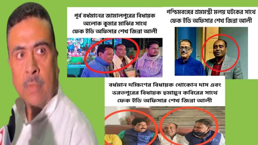 এইদিন ওয়েবডেস্ক,কলকাতা,০৩ জুন : এনফোর্সমেন্ট ডিরেক্টরেট (ইডি) অফিসার সেজে দেড় কোটি টাকার প্রতারণার অভিযোগে তৃণমূলের প্রভাবশালী নেতা, মন্ত্রী ও বিধায়কদের ঘনিষ্ট পূর্ব বর্ধমানের রায়নার ক্ষেমতা গ্রাম নিবাসী জিন্নার আলী গ্রেপ্তার হয়েছে ৷ ইডি অফিসাররা বুধবার জিন্নার আলীকে তার কলকাতার নিউটাউনের বাড়ি থেকে গ্রেপ্তার করে । এদিকে ধৃত জিন্নার আলীর সঙ্গে রাজ্যের মন্ত্রী মলয় ঘটক, বর্ধমান দক্ষিণের বিধায়ক খোকন দাস, জামালপুরের বিধায়ক অলোক মাঝি ও ভরতপুরের বিধায়ক হুমায়ূন কবিরের ছবি ব্যাপক ভাইরাল হয়েছে সামাজিক যোগাযোগ মাধ্যমে । ওই সমস্ত ছবিগুলি নিজের এক্স হ্যান্ডেলে শেয়ার করে তৃণমূলের মন্ত্রী ও বিধায়কদের গ্রেপ্তারের দাবি তুলেছেন বিরোধী দলনেতা শুভেন্দু অধিকারী ।