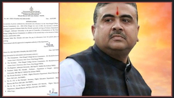 আজ শনিবার নিজের এক্স হ্যান্ডেলে পশ্চিমবঙ্গ সরকার উচ্চশিক্ষা বিভাগের ০৪.০৭.২০২৫ তারিখের একটি বিজ্ঞপ্তি (No. 460-HED-17014(99)/106/2025-CS SEC) পোস্ট করেছেন । উপ-সচিব স্বাক্ষরিত বিজ্ঞপ্তিতে বলা হয়েছে : “পশ্চিমবঙ্গ কলেজ সার্ভিস কমিশন আইন, ২০১২ (২০১২ সালের পশ্চিমবঙ্গ আইন xxix) এর ধারা ৫ এর উপ-ধারা (৩) দ্বারা প্রদত্ত ক্ষমতা প্রয়োগ করে, রাজ্যপাল এতদ্বারা সন্তুষ্টির সাথে যাদবপুর বিশ্ববিদ্যালয়ের বাংলা বিভাগের অধ্যাপক হিসেবে কর্মরত অধ্যাপক সেলিম বক্স মণ্ডলকে পরবর্তী আদেশ না দেওয়া পর্যন্ত জনসেবার স্বার্থে তাঁর স্বাভাবিক দায়িত্বের অতিরিক্ত হিসেবে পশ্চিমবঙ্গ কলেজ সার্ভিস কমিশনের পরীক্ষা নিয়ন্ত্রক পদে নিয়োগ করছেন। অধ্যাপক সেলিম বক্স মণ্ডল তাঁর মূল পদ থেকে বেতন ও ভাতা গ্রহণ করবেন।এই বিভাগের উপযুক্ত কর্তৃপক্ষের অনুমোদনক্রমে এটি জারি করা হলো ।”