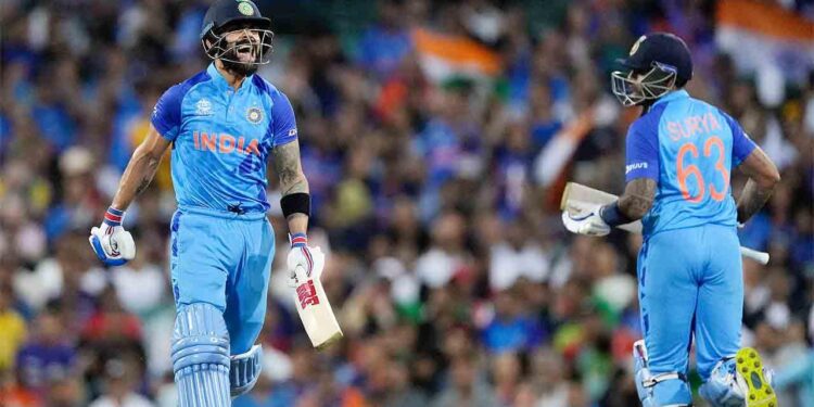 এইদিন ওয়েবডেস্ক,সিডনি,২৭ অক্টোবর : টি-২০ বিশ্বকাপের সুপার টুয়েলভে নিজেদের দ্বিতীয় ম্যাচে নেদারল্যান্ডসের বিপক্ষে নির্ধারিত ২০ ওভার শেষে ২ উইকেট হারিয়ে ১৭৯ রান করল ভারত । বৃহস্পতিবার সিডনিতে অনুষ্ঠিত এই ম্যাচে টস জিতে ব্যাট করতে নেমে ভারত শুরুতেই লোকেশ রাহুলের উইকেট হারায় । তিনি ১২ বলে মাত্র ৯ রান করে এলবিডব্লিউর হন । এরপর দ্বিতীয় উইকেটে ৭৩ রানের জুটি গড়েন রোহিত শর্মা ও বিরাট কোহলি । তাঁদের জুটি ভাঙেন ফ্রেড ক্লাসেন । ৩৯ বলে ৫৩ রানের ইনিংস খেলে ডিপ মিড উইকেটে অ্যাকারম্যানের হাতে ধরা পড়েন অধিনায়ক রোহিত। তার ইনিংসটি সাজানো ছিল ৪ চার ও ৩ ছক্কার মারে । কোহলিকে সঙ্গ দিতে তৃতীয় উইকেটে নেমে ব্যাট হাতে ঝড় তুলতে থাকেন সূর্যকুমার যাদভ। দুজনের জুটিতে আর কোনো বাধা হয়ে দাঁড়াতে পারেননি ডাচ বোলাররা । কোহলি ৪৪ বল খেলে ৬২ রানে অপরাজিত থাকেন । তাঁর ইনিংসে ছিল ৩ টি চার ও ২ টি ছক্কা । অন্যদিকে ২৫ বলে ৭ চার ও ১ ছক্কাসহ ৫১ রান করে অপরাজিত থাকেন সূর্যকুমার ।
