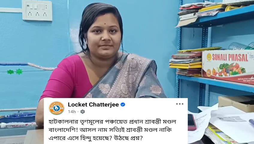 এইদিন ওয়েবডেস্ক,বর্ধমান,০৪ ডিসেম্বর : মালদার  রসিদাবাদ গ্রাম পঞ্চায়েতের তৃণমূলের প্রাক্তন প্রধান লাভলি খাতুনের পর পূর্ব বর্ধমান জেলার কালনা মহকুমার হাটকালনা পঞ্চায়েতের তৃণমূলের প্রধান শ্রাবন্তী মণ্ডলের গায়ে লেগেছে বাংলাদেশি তকমা । তার ও তার স্বামী তৃণমূল নেতা স্বামী বনমালী মন্ডলের বিরুদ্ধে ২০২০ সালে বাংলাদেশ থেকে অবৈধভাবে অনুপ্রবেশের অভিযোগ তুলেছে বিজেপি ৷ এনিয়ে দিন কয়েক আগে শ্রাবন্তী মণ্ডলের পঞ্চায়েত সদস্যপদ খারিজ করে নথিপত্র যাচাই করার দাবি তুলেছেন বিজেপির জেলা সভানেত্রী স্মৃতিকণা বসু । এবারে শ্রাবন্তী মণ্ডলদের ধর্ম পরিচয় নিয়েই প্রশ্ন তুলে দিলেন রাজ্য বিজেপির নেত্রী লকেট চ্যাটার্জি । তিনি সন্দেহ প্রকাশ করেছেন শ্রাবন্তী মণ্ডল ও তার স্বামী বনমালী মন্ডল স্থানীয় এক দম্পতিকে বাবা-মা সাজিয়ে শুধু নাম বদল নয়,ধর্ম পরিচয়ও বদল করে ফেলেছেন । এনিয়ে লকেট চ্যাটার্জি ফেসবুকে লিখেছেন,“হাটকালনার তৃণমূলের পঞ্চায়েত প্রধান শ্রাবন্তী মণ্ডল বাংলাদেশি! আসল নাম সত্যিই শ্রাবন্তী মণ্ডল নাকি এপারে এসে হিন্দু হয়েছে? উঠছে প্রশ্ন?” পাশাপাশি তিনি একটি টিভি চ্যানেলের প্রতিবেদনের ক্লিপও শেয়ার করেছেন ।