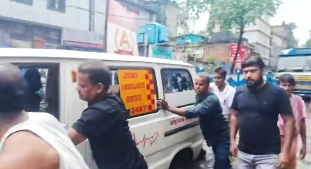 এইদিন ওয়েবডেস্ক,কলকাতা,২৩ সেপ্টেম্বর : তুমুল বৃষ্টিপাতে ভয়াবহ পরিস্থিতি শহর কলকাতায় । কার্যত গোটা কলকাতা জলমগ্ন । আজ মঙ্গলবার সকালেই জমা জলে বিদ্যুতের তার ছিঁড়ে বিদ্যুৎস্পৃষ্ট হয়ে ৭ জনের মৃত্যুর খবর পাওয়া গিয়েছিল । সবচেয়ে দুর্ভোগে পড়তে হচ্ছে রোগীর পরিবারকে ৷ একটা অ্যাম্বুলেন্সে রোগী নিয়ে যাওয়ার সময় জল ইঞ্জিনে ঢুকে স্টার্ট বন্ধ হয়ে যায় । তারপর রোগীর পরিবারকে জলের মধ্যে অ্যাম্বুলেন্স ঠেলে ঠেলে নিয়ে যেতে দেখা যায় । পরিবারের এক ক্ষিপ্ত সদস্যকে মিডিয়ার ক্যামেরার সামনে মুখ্যমন্ত্রী মমতা ব্যানার্জির উদ্দেশ্যে বলতে শোনা যায়, “দেখছেন মুখ্যমন্ত্রী, উন্নয়ন রাস্তায় দাঁড়িয়ে আছে ।”