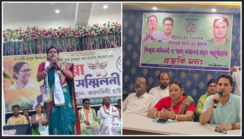 এইদিন ওয়েবডেস্ক,উত্তর দিনাজপুর,১২ অক্টোবর : উত্তর দিনাজপুর জেলার ইটাহার বিধানসভা কেন্দ্রের তৃণমূল কংগ্রেসের বিধায়ক মোশারফ হোসেনকে “হিন্দুর ভগবান আর মুসলমানদের আল্লাহ” বলে অবিহিত করলেন তৃণমূল নেত্রী চৈতালি ঘোষ সাহা ৷ চৈতালি ঘোষ সাহা হলেন উত্তর দিনাজপুর জেলার তৃণমূলের মহিলা মোর্চার জেলা সভাপতি । গতকাল করনদিঘী ব্লক তৃণমূল কংগ্রেসের উদ্যোগে করনদিঘী হাইস্কুলে আয়োজিত বিজয়া সম্মিলনী অনুষ্ঠানে দলীয় বিধায়ককে কার্যত দুই সম্প্রদায়ের বিধাতার মর্যাদা দিয়ে বসলেন তিনি । যদিও বিজেপি মনে করছে যে এটা তৃণমূল কংগ্রেসের “তোষণের চূড়ান্ত রূপ” ।