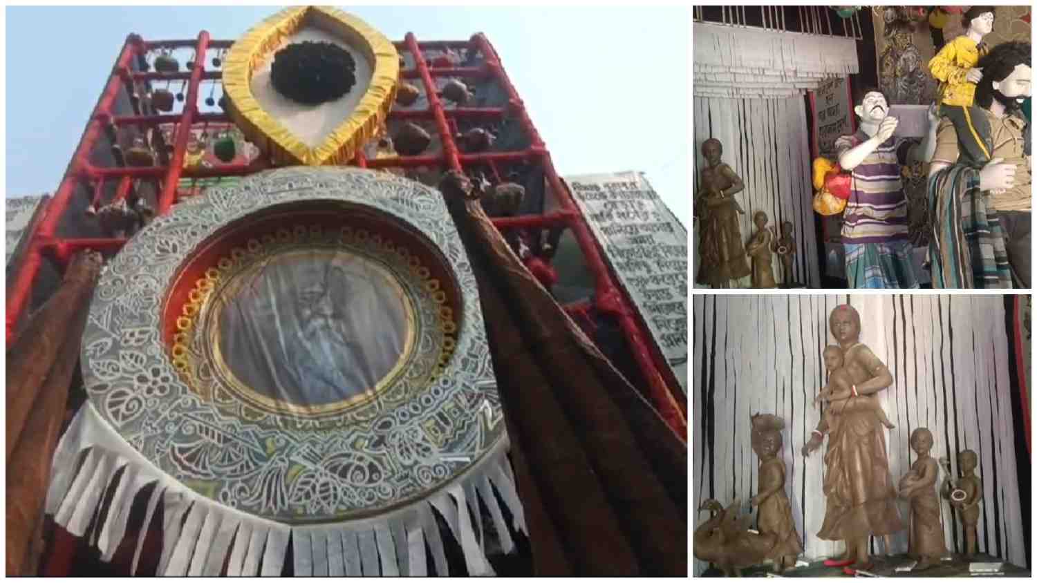 ক্লাবের সভাপতি বুবাই সিংহ বলেন,আমদের ক্লাবের মণ্ডপে মূলত ১৯৭১ সালে “কাঁটাতার” পেরিয়ে ভারতে আশ্রয় নেওয়া উদ্বাস্তু মানুষদের জীবনযুদ্ধের এক অমোঘ কাহিনী ফুটিয়ে তোলা হয়েছে। কি কারণে ও কীভাবে অসংখ্য মানুষ নিজেদের ভিটেমাটি ছেড়ে সীমান্ত পেরোতে বাধ্য হয়েছিল‘সেই সময়ের জীবনযাত্রা,মানসিক টানাপোড়েন,খাদ্যাভ্যাস এবং নিত্যদিনের সংগ্রামের ছবি অত্যন্ত বাস্তব ধর্মীভাবে আমাদের মণ্ডপে তুলে ধরেছেন শিল্পী। ক্লাব সদস্য শ্যামল বিশ্বাস বলেন,’কাঁটাতারের বেড়া, উদ্বাস্তুদের ক্লান্ত মুখ,অনিশ্চিত ভবিষ্যতের আতঙ্ক,এইসব কিছু মিলিয়ে মণ্ডপজুড়ে তৈরি হয়েছে এক গভীর অনুভবের পরিবেশ।’সেটাই দর্শনার্থীদের মন কাড়ছে বলে ক্লাব সদস্য দাবি করেছেন।