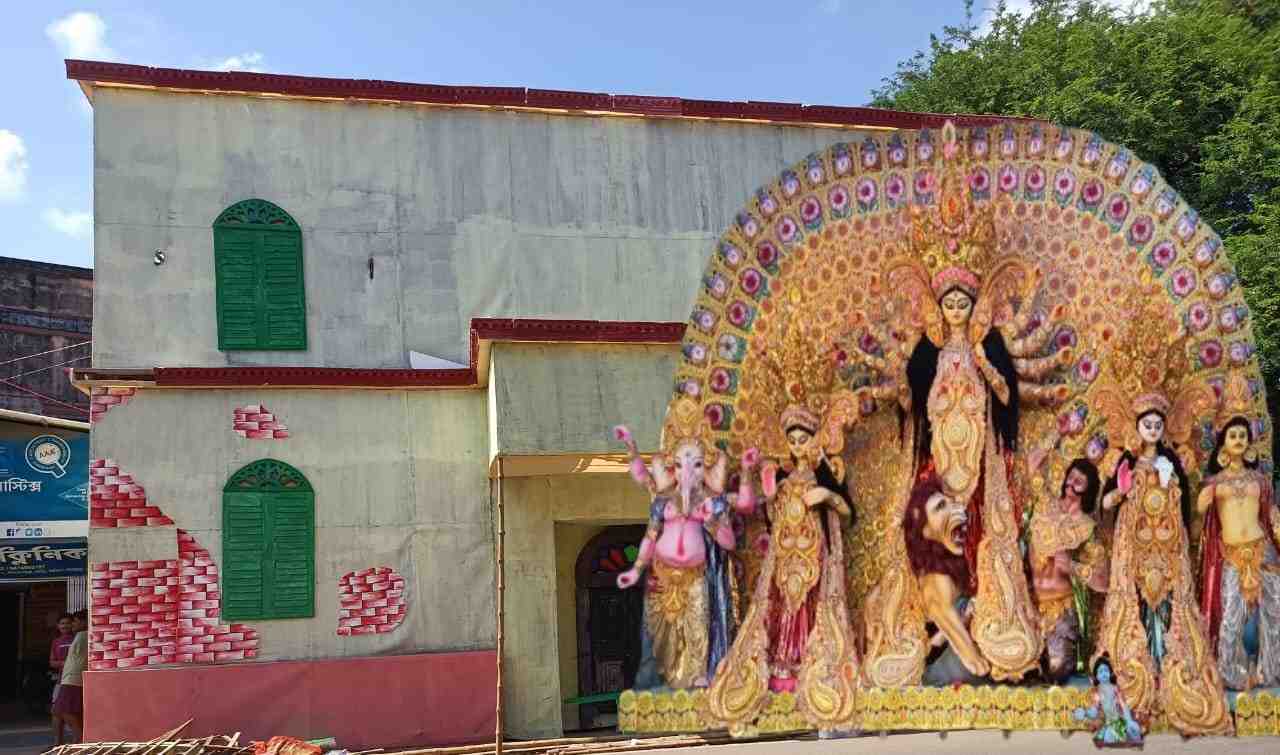 চটের বস্তার উপর মাটির প্রলেপ আর থার্মকলের নিখুঁত রঙের কারুকাজে রাজবাড়ীর আদাল আনছেন শিল্পিরা । তবে আজ মহা পঞ্চমীর দিনেও এখনো মণ্ডপের কাজ সম্পূর্ণ হয়নি । বর্তমানে পুরোদমে কাজ চলছে। ক্লাব কর্মকর্তাদের আশা যে আজ রাতের মধ্যেই মণ্ডপের কাজ সম্পূর্ণ হয়ে যাবে এবং মহাষষ্ঠীর দিন থেকেই তারা দর্শনার্থীরা স্বাগত জানাতে পারবেন ।