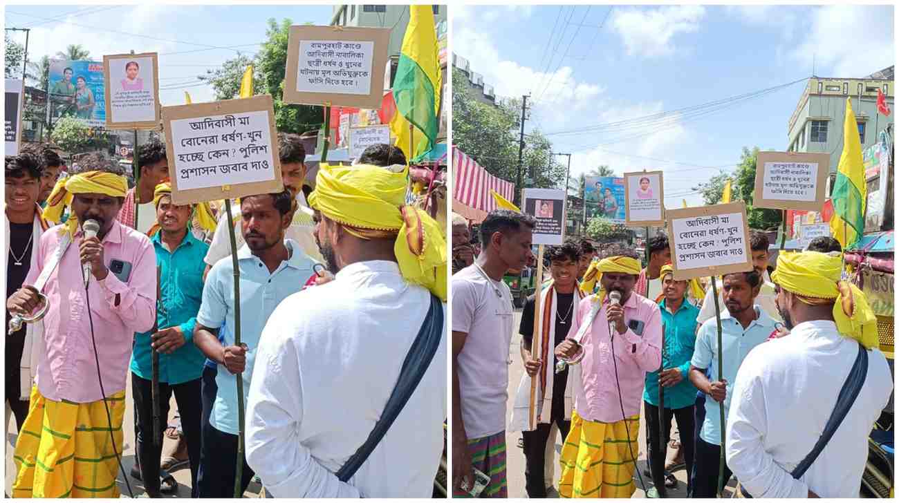 এদিন সংগঠনের তরফে শ্লোগান তোলা হয় : “ধর্ষক শিক্ষক মনোজ পালের ফাঁসি চাই”, আদিবাসীদের নিরাপত্তা দিতে ব্যর্থ পুলিশ প্রশাসন দূর হঠো”, “পুলিশ মন্ত্রী দূর হঠো”,” ব্যর্থ পুলিশমন্ত্রী হায় হায়”, “রাজ্যে নারী নির্যাতন হচ্ছে কেন পুলিশমন্ত্রী জবাব দাও”, “জবাব তোমায় দিতেই হবে, নইলে গদি ছাড়তে হবে” প্রভৃতি ৷