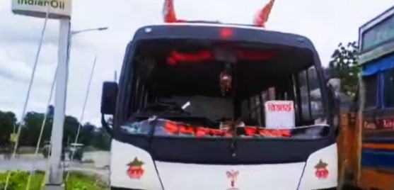 এইদিন ওয়েবডেস্ক,দিনহাটা,২৯ মে : আলিপুরদুয়ারে প্রধানমন্ত্রী নরেন্দ্র মোদীর জনসভায় যাওয়ার পথে কোচবিহারের দিনহাটা শিমূলতলা পেট্রোল পাম্পের সামনে বিজেপি কর্মীদের একটি ট্যুরিস্ট বাসে ভাঙচুর চালানোর অভিযোগ উঠল শাসকদল তৃণমূল কংগ্রেস আশ্রিত দুষ্কৃতীদের বিরুদ্ধে। হামলার ঘটনাটি ঘটেছে আজ বৃহস্পতিবার সকাল ১০:৩০ নাগাদ দিনহাটার শিমূলতলা এলাকায় । ভেঙে দেওয়া হয় বাসের সামনের কাচ । তৃণমূলের দুষ্কৃতী বাহিনীর হামলা থেকে বাঁচতে বিজেপি কর্মীরা কোনো রকমে বাস থেকে নেমে ছুটে নিরাপদ জায়গায় পালিয়ে যায় ।