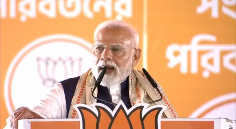 প্রধানমন্ত্রীর নরেন্দ্র মোদী বলেন, ‘পশ্চিমবঙ্গের মাটি ভারতবর্ষকে সময় সময় নতুন চেতনা দিয়েছে । এই মাটি পুনর্জাগরণের কেন্দ্র ছিল । এই ভুমি সেই অমর বাণীর কেন্দ্র : ‘জাগো ওঠো নবজীবনের গানে, নব আলোক জাগাও প্রাণে প্রাণে’ । কিন্তু আজ পশ্চিমবঙ্গের নতুন আলোর দরকার । বাস্তবিক পরিবর্তন দরকার । স্বাধীনতার পর পশ্চিমবঙ্গ প্রথমে কংগ্রেস এবং পরে বামপন্থীদের লম্বা জমানা দেখেছিল । এরপর ১৫ বছর আগে আপনারা পরিবর্তনের সিদ্ধান্ত নিয়েছিলেন এবং মা- মাটি-মানুষের উপর ভরসা করেছিলেন । কিন্তু পরিস্থিতি আগের থেকে অনেক বেশি খারাপ হয়ে গেছে৷ নিয়োগ দুর্নীতির কারণে নব প্রজন্মের জীবন খারাপ হয়ে গেছে । মেয়ে বোনেদের উপর অত্যাচার বেড়েছে । দুর্বৃত্তায়ন আর ভ্রষ্টাচার তৃণমূল সরকারের পরিচিতি হয়ে গেছে । এটা নিশ্চিত যে যতদিন তৃণমূল সরকার আছে ততদিন পশ্চিমবঙ্গের উন্নয়ন অবরুদ্ধ থাকবে। এই কারণে আজ পশ্চিমবঙ্গের প্রতিটা মানুষ বলছে যে তৃণমূল গেলে তবেই আসল পরিবর্তন হবে৷’
