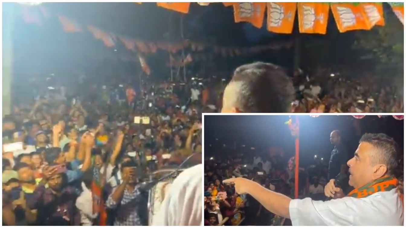 শুভেন্দু অধিকারী বলেন, ‘আজকে পুলিশকে সামনে রেখে বলছি, যারা গোটা এলাকায় বালি চুরি করল, নদীগুলোকে শেষ করে দিল, যারা নরেন্দ্র মোদিজীর পাঠানো স্বচ্ছ ভারতের শৌচালয় লুট করেছে, যারা প্রধানমন্ত্রী আবাস যোজনার টাকা কোন প্রকৃত উপভোক্তাকে দেয়নি,যারা জল জীবন মিশনে কোন বাড়িতে নলের সাহায্যে জল পৌঁছে দিতে পারল না, যারা চৌদ্দ বছর চার মাসে একটাও চাকরি দিতে পারেনি । মুখ্যমন্ত্রী বিগত নির্বাচনে কি বলেছিল ? বলেছিল ডবল ডবল চাকরি দেবো । আর এখন তো ডবল ডবল চাকরি যাচ্ছে । ২৬ হাজার গেছে আর ৩২ হাজার ঝুলছে ।’ তিনি বলেন,’বলছে পরিযায়ী শ্রমিক ফিরে এসো ৫০০০ করে টাকা দেব। পরিযায়ী শ্রমিকরা উত্তর দিয়েছে তামিলনাড়ু থেকে রাজস্থান থেকে…. মাননীয়া শুভ নন্দন, আমরা এখানে ৫০০০০ টাকা কামাই, ওখানে যাব না, আপনার এই ঢপের চপ খাবোনা । আপনি এই টাকাটা দেবেন এপ্রিল মাস পর্যন্ত । ভোট শেষ মমতা ব্যানার্জিও শেষ,ভোকাট্টা।’