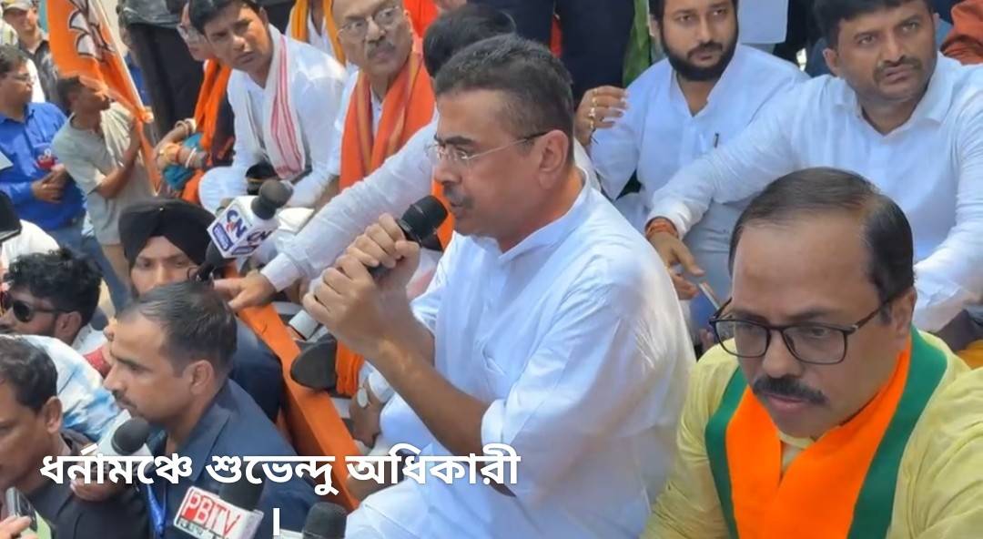 “ধর্ষকদের নেত্রী কে ? মমতা ব্যানার্জি আবার কে” : শ্লোগান তুলে দুর্গাপুরে মেডিকেল ছাত্রীর ৫  ধর্ষকের ফাঁসির দাবিতে ধর্না শুরু করলেন শুভেন্দু অধিকারী ; পুলিশের বিরুদ্ধে মঞ্চে হামলার অভিযোগ